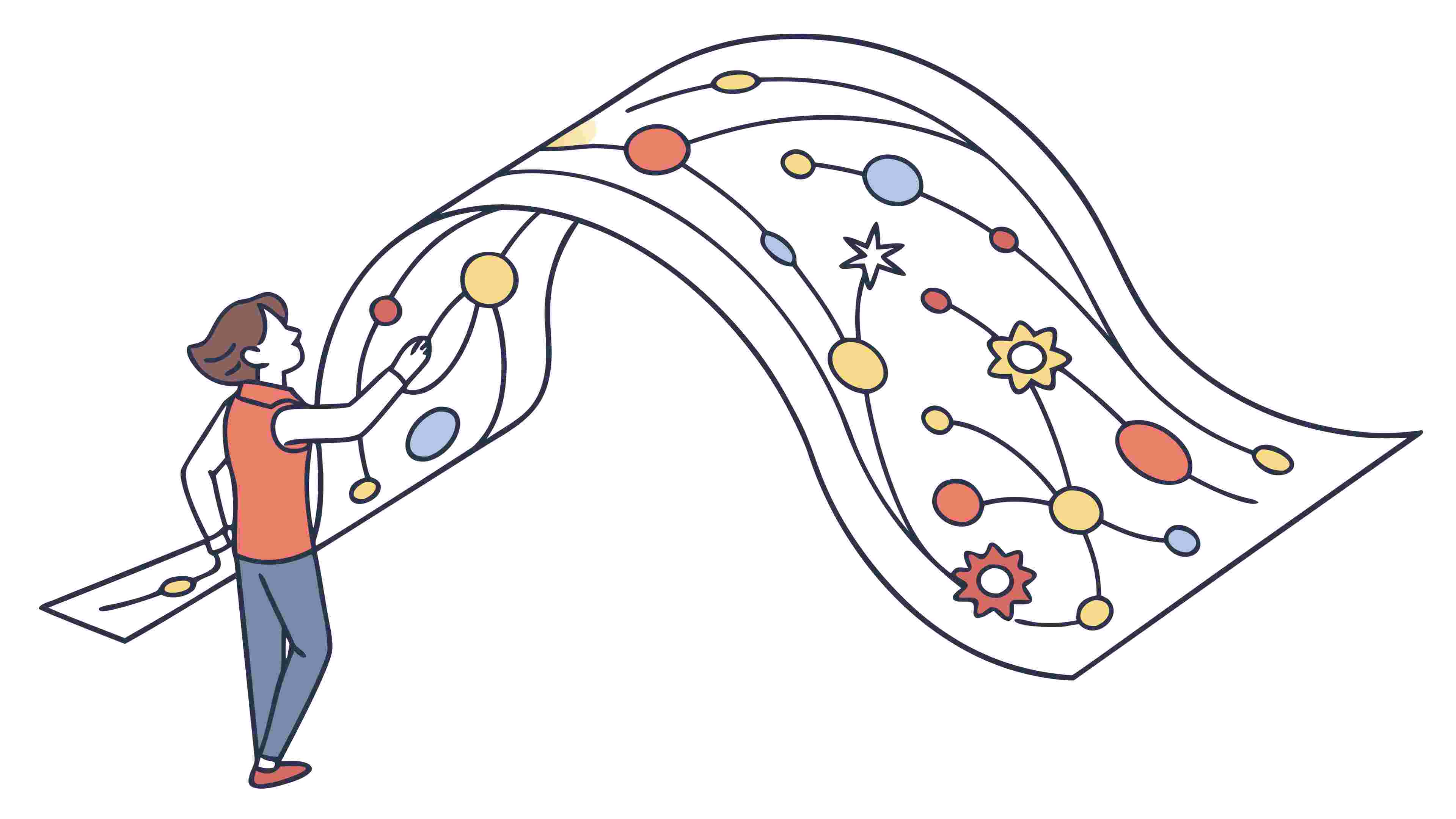 Person Unveiling Connected Data Ribbon, vector design Generative AI