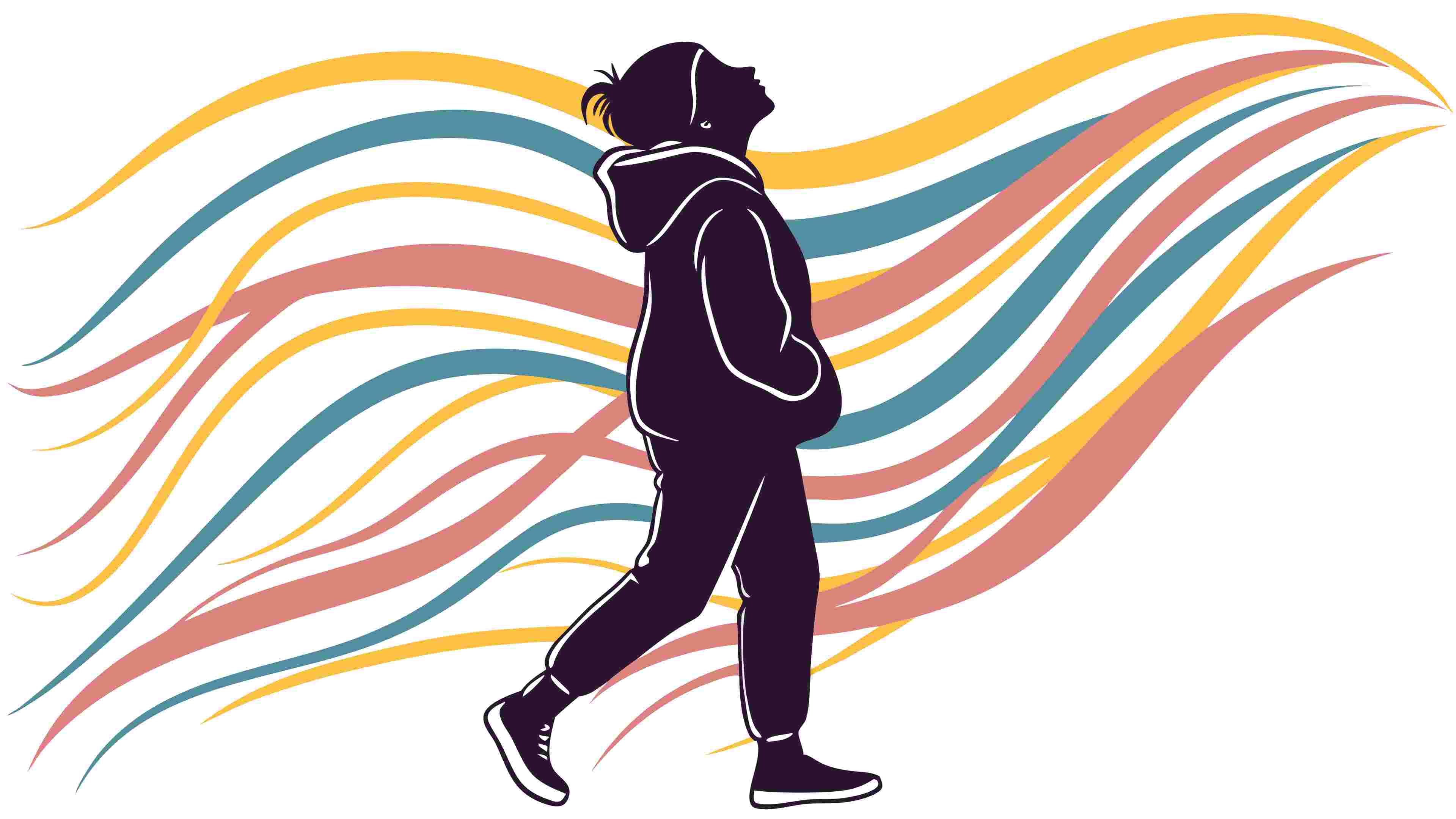 Person Walking with VR Headset and Abstract Environment, vector design Generative AI
