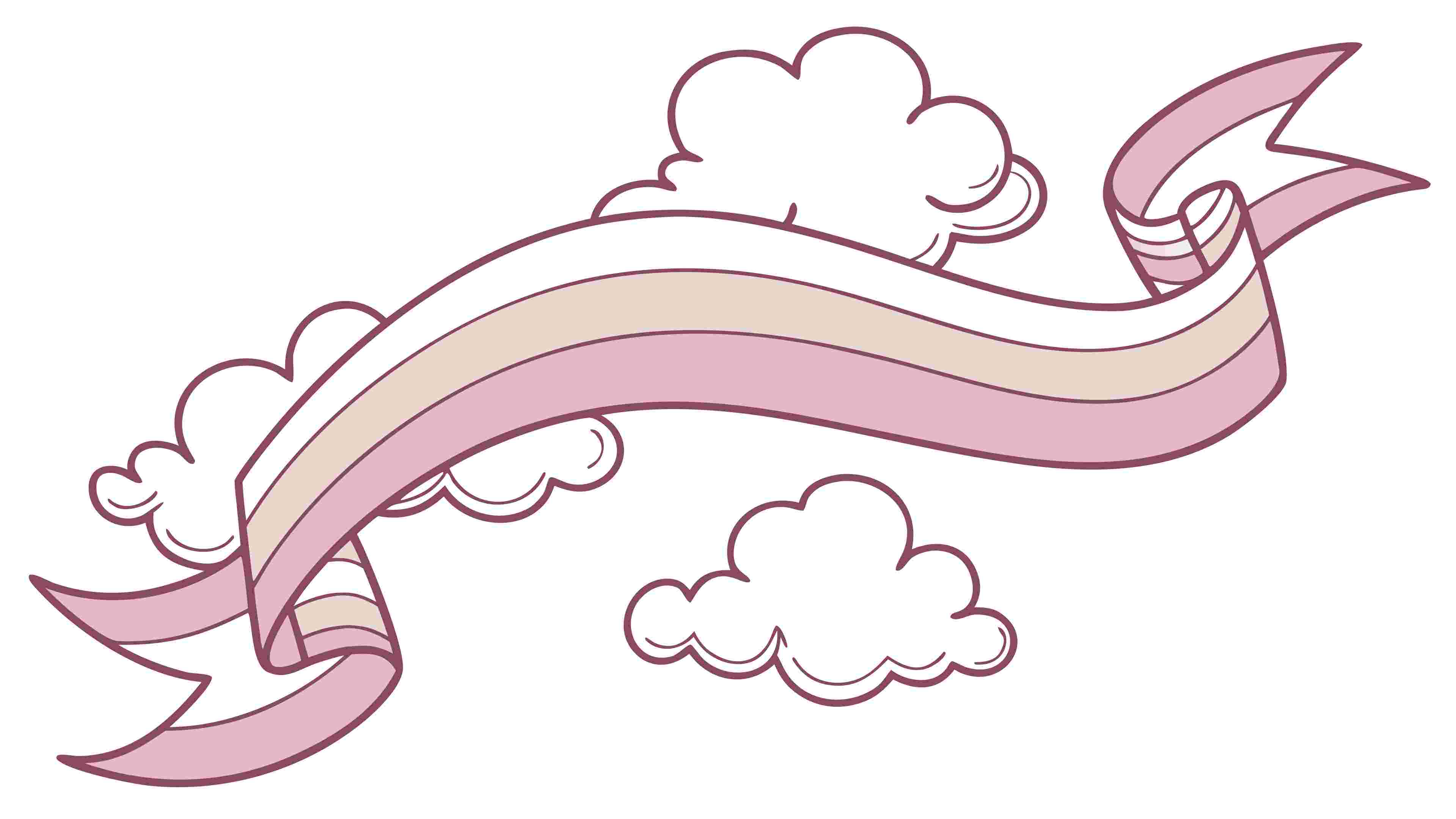 A whimsical vector illustration of a pink wavy ribbon banner, adorned with soft cloud motifs. Ideal for celebratory events, sweet announcements, or decorative elements in lighthearted, dreamy designs, vector design Generative AI.