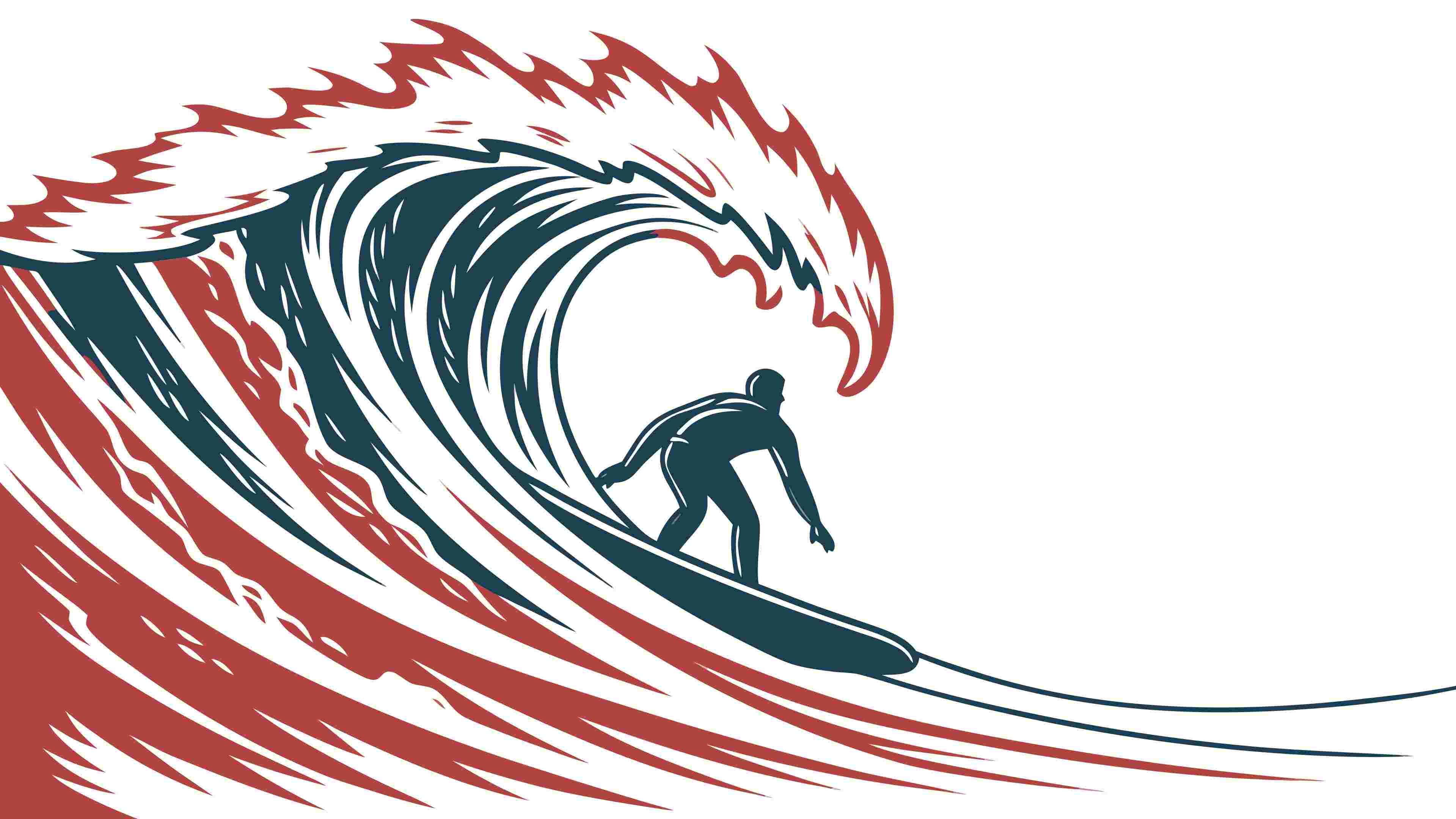 A powerful vector illustration of a large ocean wave breaking, rendered with dynamic water spray and a sense of immense force. This graphic is perfect for surf-related content, maritime themes, or environmental awareness campaigns. It captures the raw beauty and power of the ocean, suitable for inspiring awe and conveying natural energy. vector design Generative AI