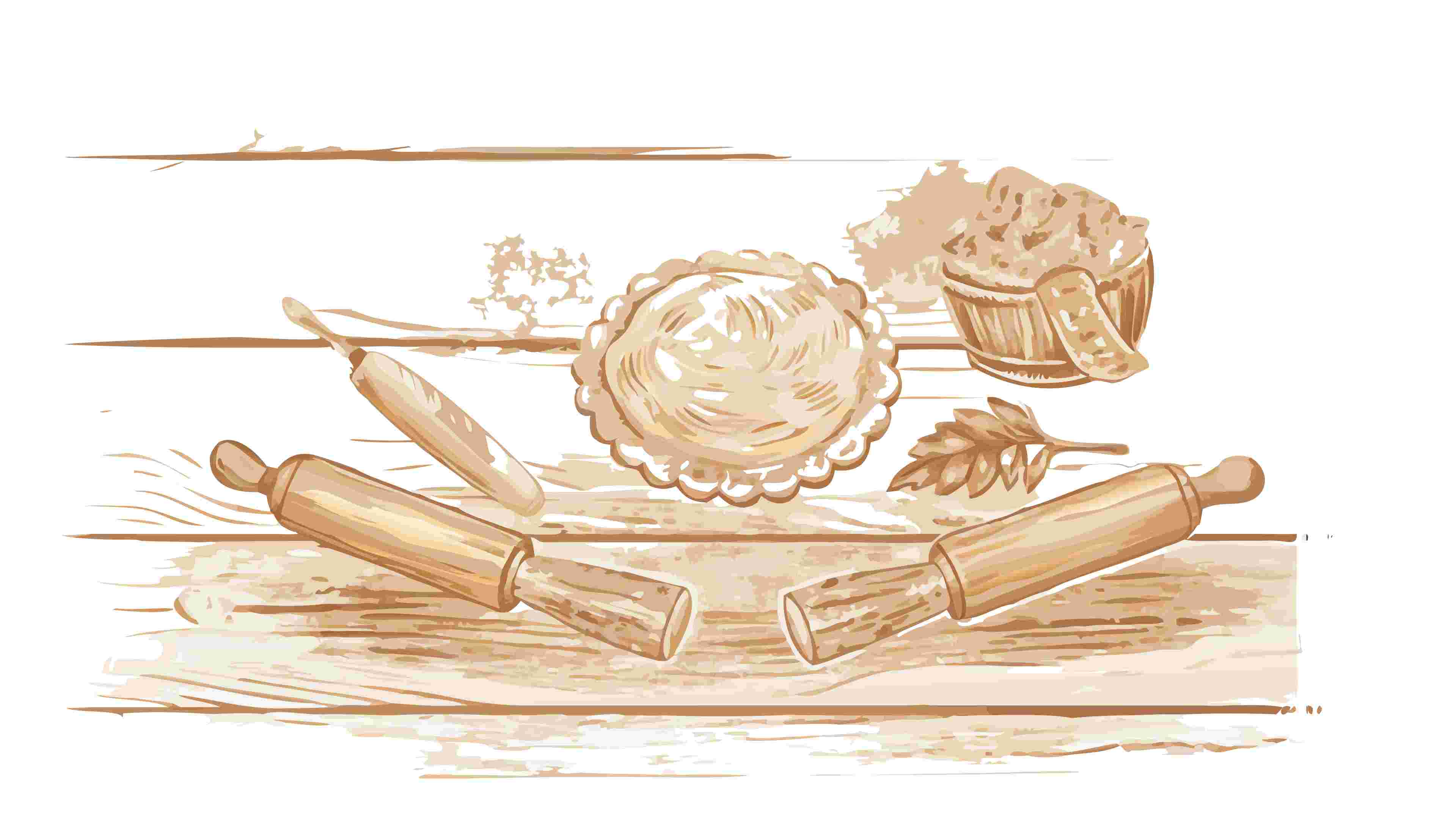 A charming vector illustration of a rustic baking scene, featuring prepared dough, flour, and a rolling pin on a warm wooden surface. Great for culinary content, traditional cooking themes, food preparation visuals, or artisanal bakery branding, vector design Generative AI