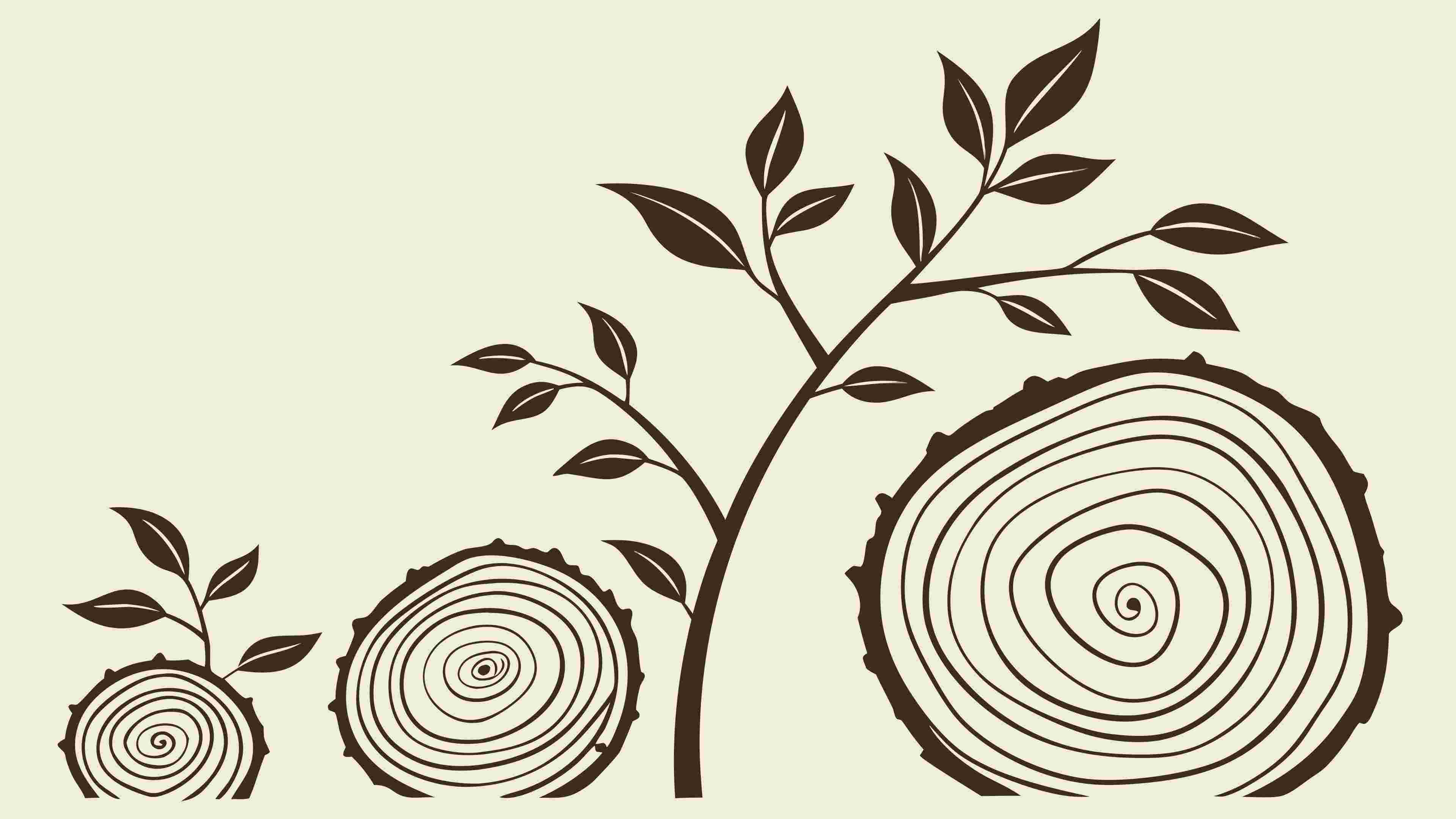 A rustic vector illustration of a tree stump, clearly showing its concentric growth rings and emerging small branches. Symbolizes growth, time, and nature's resilience, ideal for environmental, natural, or forestry themes, vector design Generative AI.
