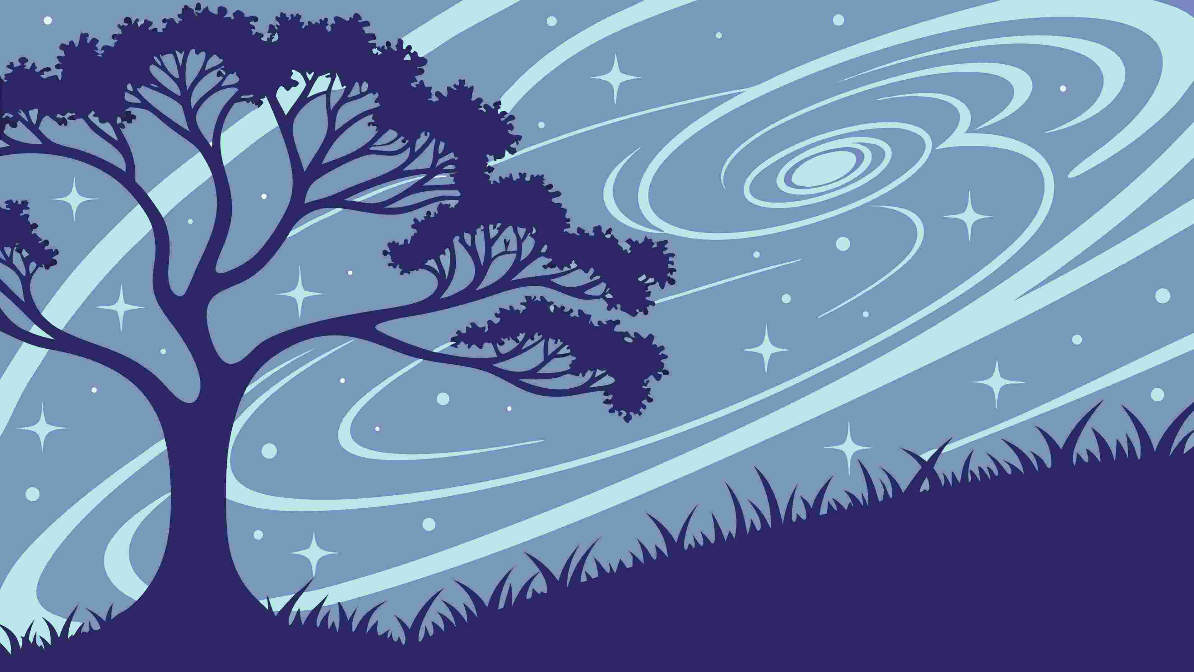 A serene vector illustration of a solitary tree silhouetted against an abstract cosmic landscape with swirling patterns. This graphic is perfect for meditative themes, fantasy art, or environmental awareness content. It merges natural elements with celestial wonder, suitable for creating calming, mysterious, and thought-provoking visuals. vector design Generative AI