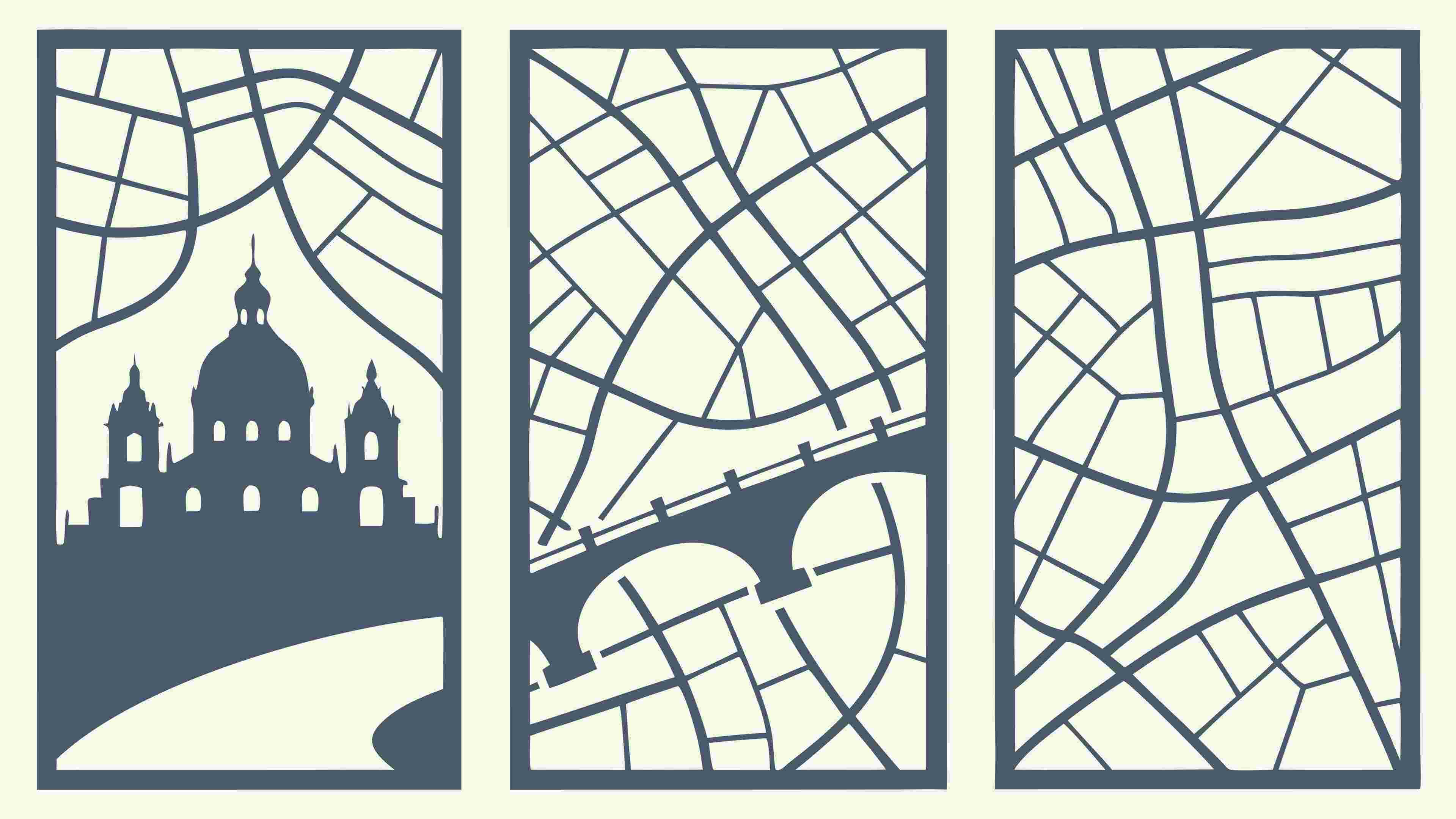 Set of Three Abstract City Map Panels, Urban Design, vector design Generative AI