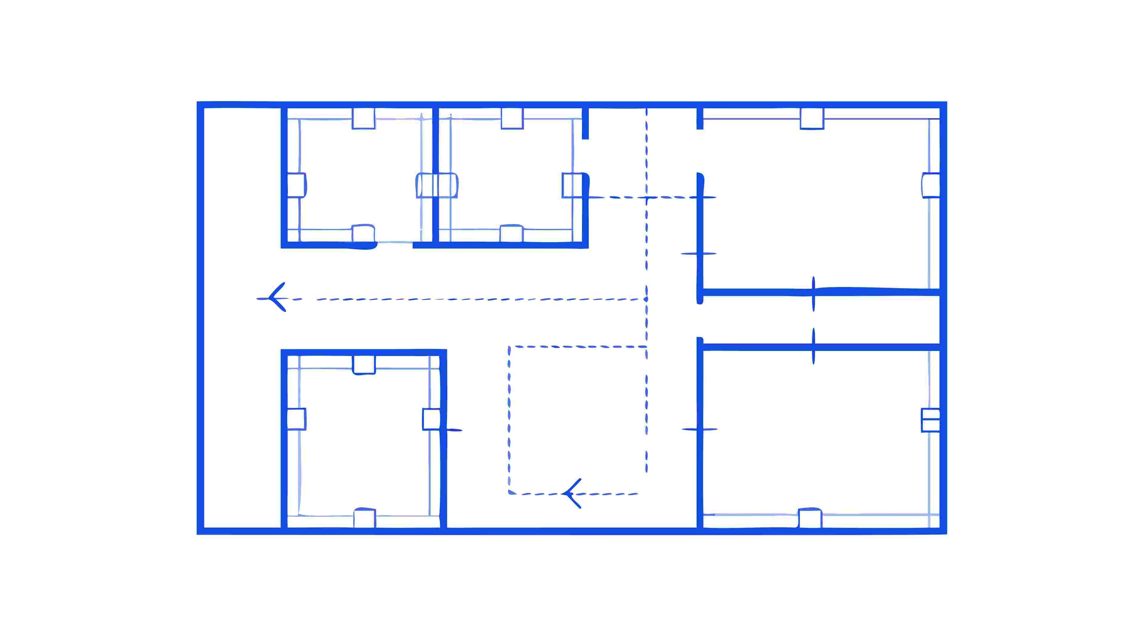 A simplified vector blueprint illustration of an apartment floor plan, clearly outlining room divisions and basic layout. This graphic is useful for real estate brochures, property management, or introductory architectural studies. It offers a clear and concise overview, ideal for quick understanding of living spaces and basic structural elements. vector design Generative AI