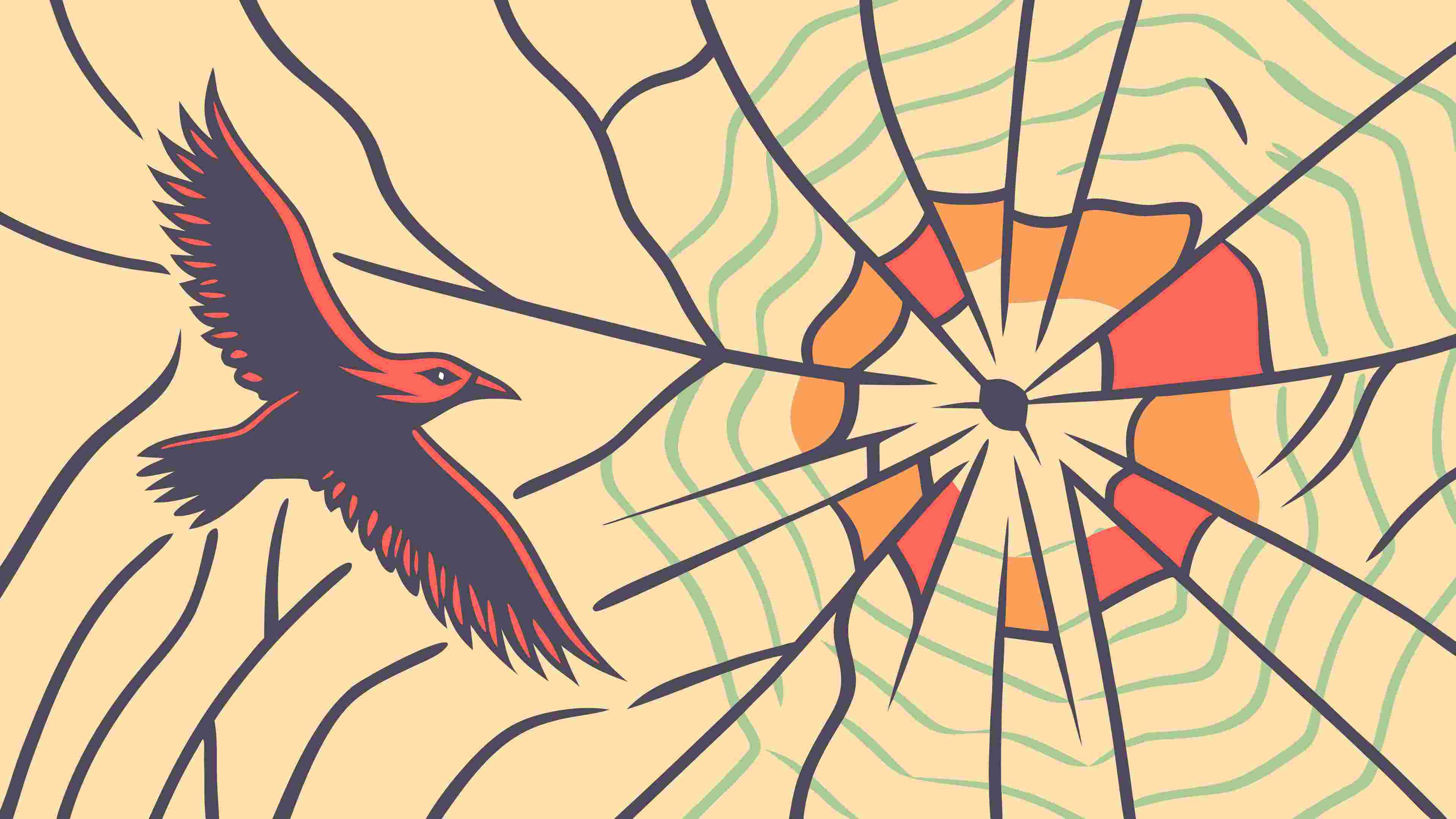 Solitary Crow on Tree Branch Over Cracked Background, vector design Generative AI