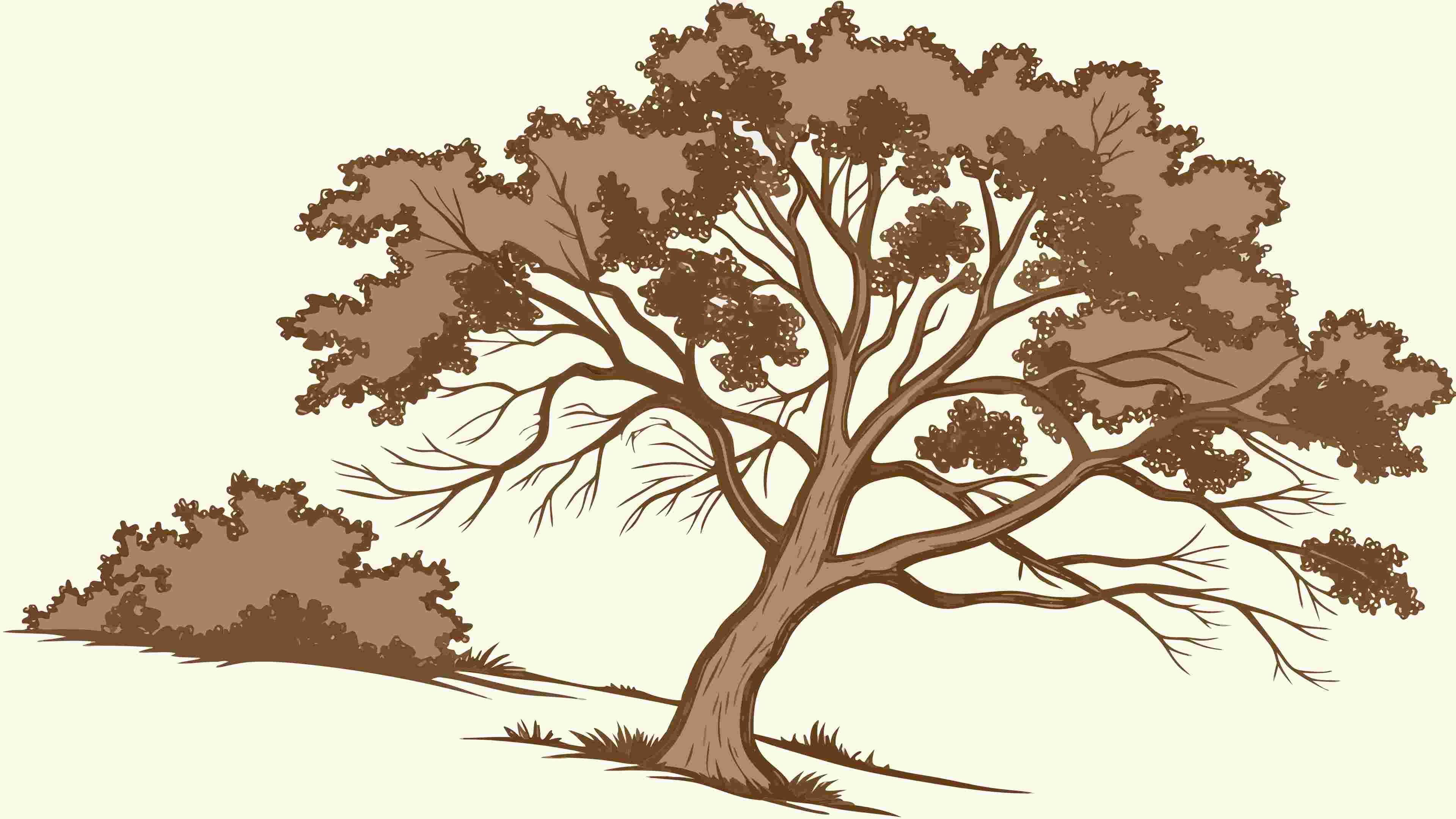 Sturdy Oak Tree Silhouette with Full Foliage, vector design Generative AI