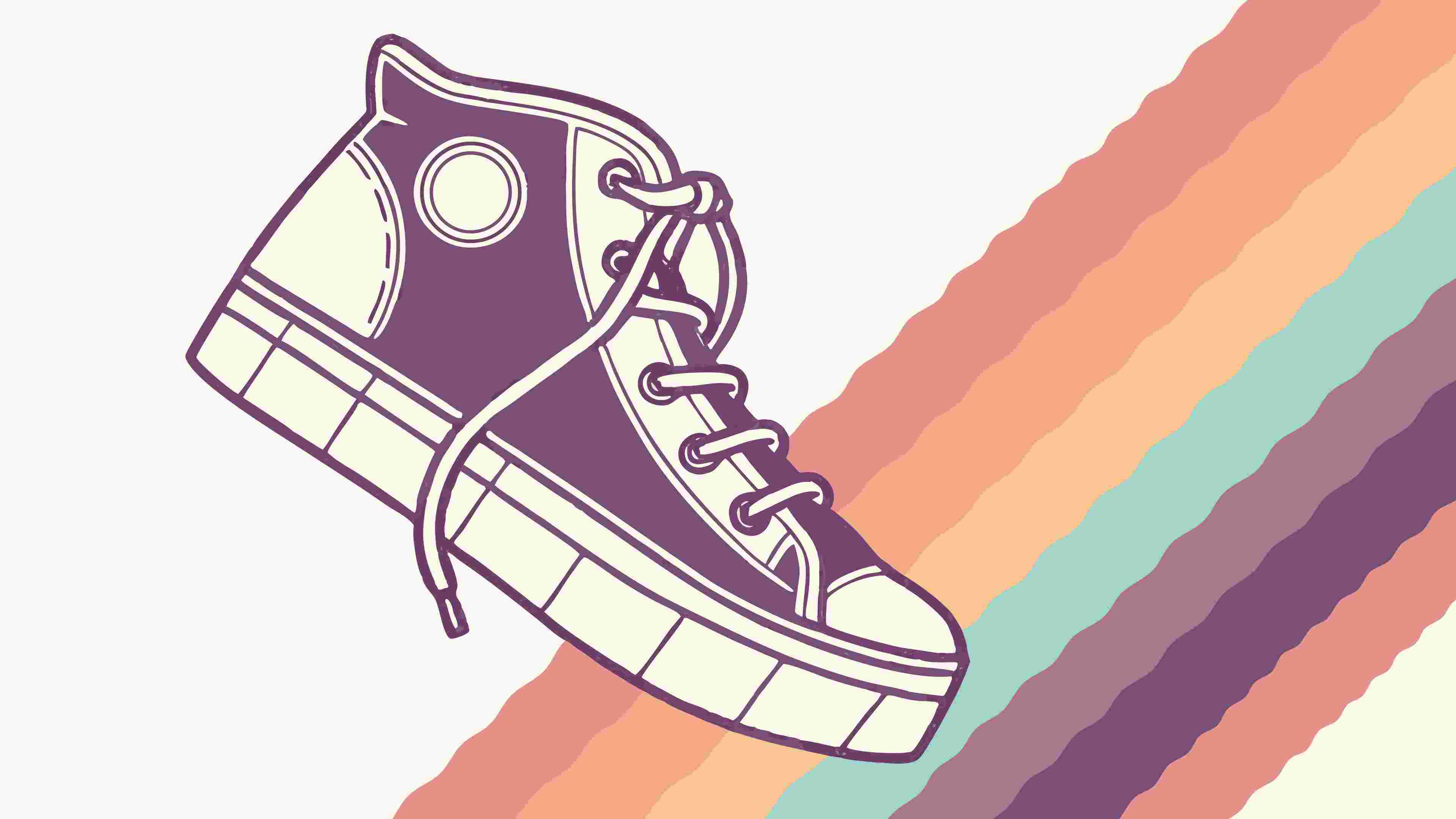 A stylish vector illustration of a classic high-top sneaker, set against a dynamic background of rainbow stripes. This graphic is perfect for fashion branding, youth culture, or artistic apparel designs. It conveys coolness, individuality, and vibrant energy, suitable for lively advertisements, casual promotions, or projects that celebrate unique style. vector design Generative AI