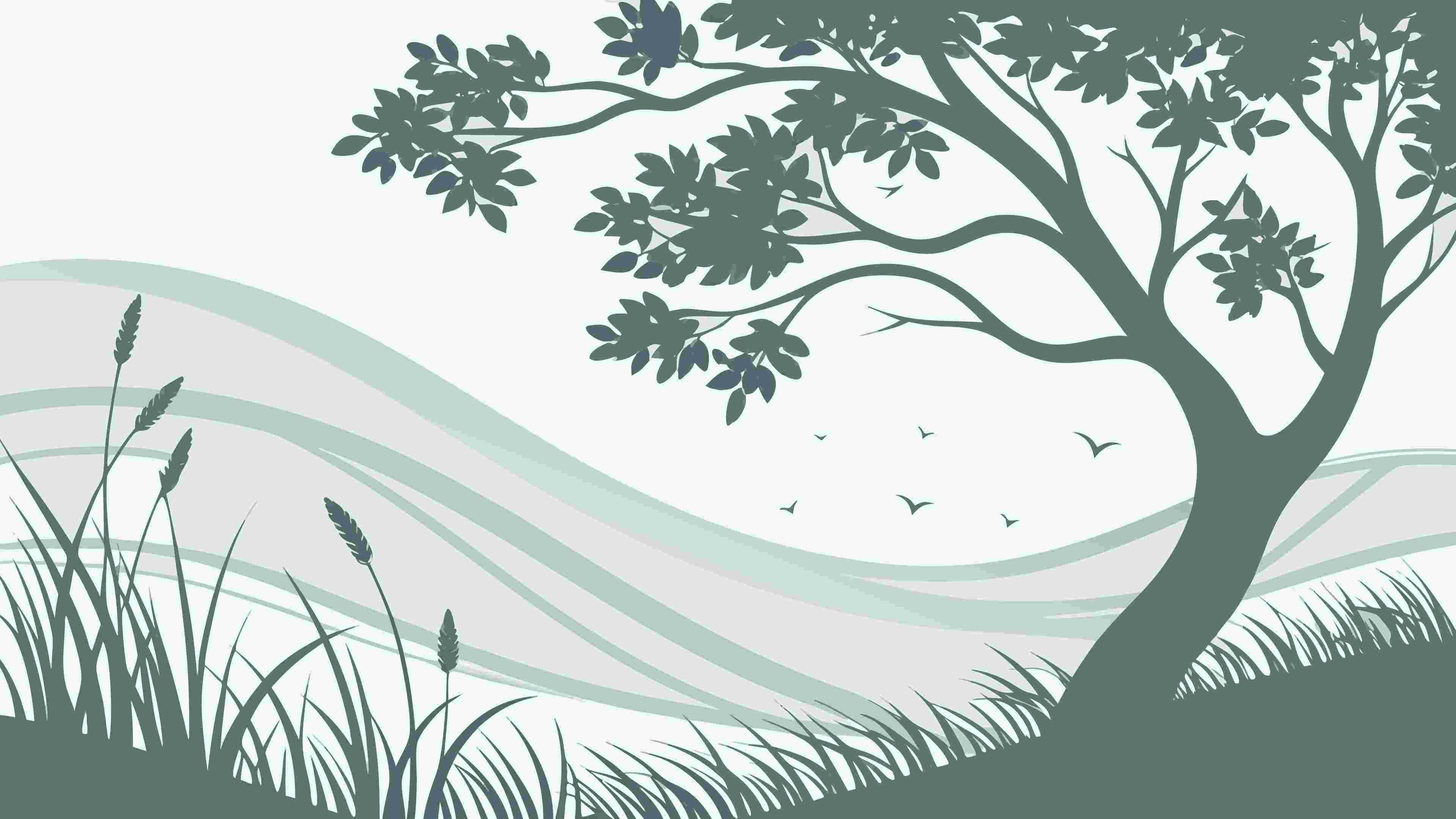 A serene vector illustration featuring stylized trees on a gently wavy landscape, rendered in muted tones. Conveys tranquility and natural harmony, perfect for backgrounds, environmental themes, or calming decorative art, vector design Generative AI.