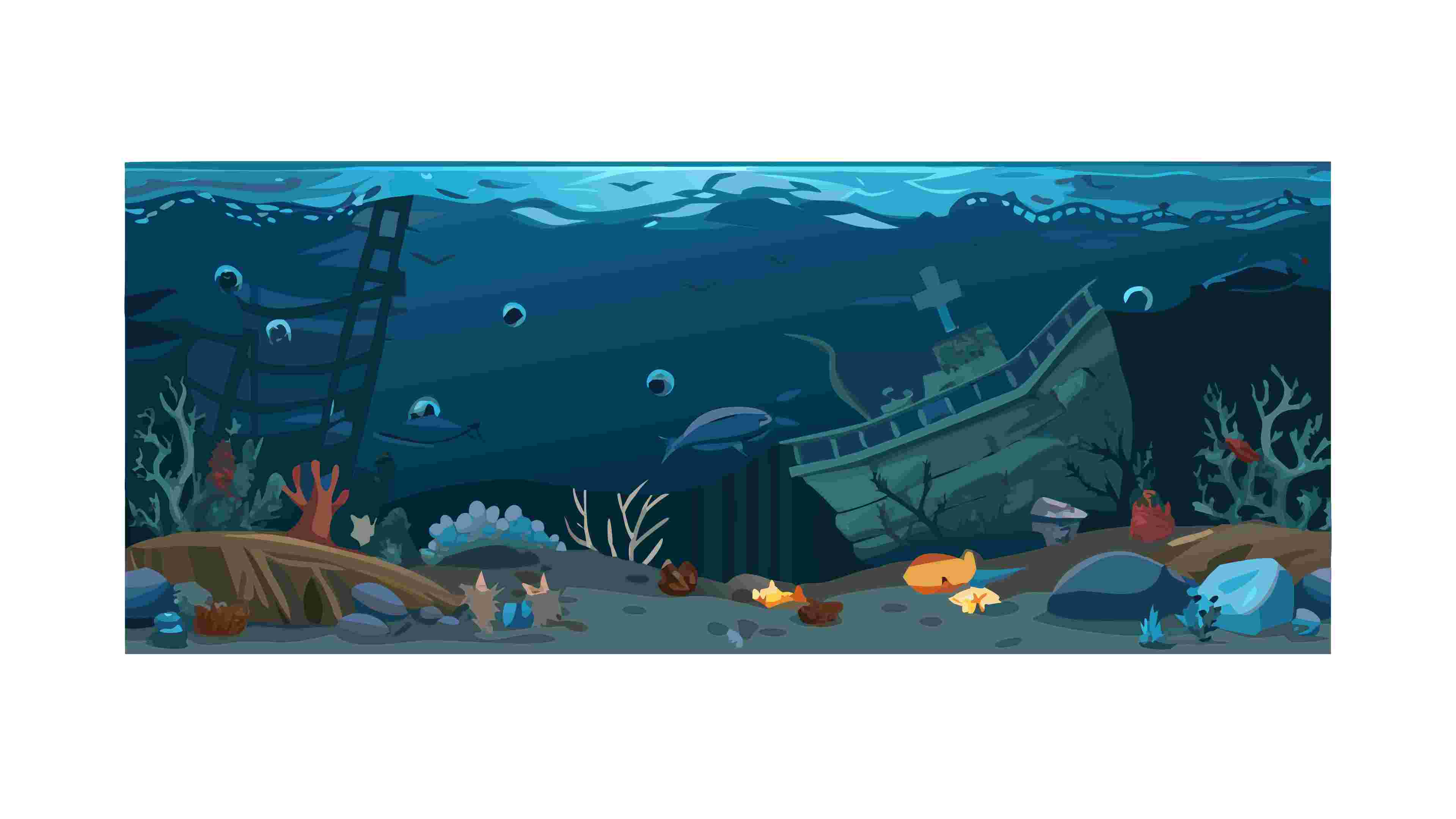 A detailed vector illustration depicting a sunken shipwreck resting on the ocean floor, teeming with diverse marine life. Great for historical diving themes, educational content about maritime history, or aquatic adventure designs, vector design Generative AI