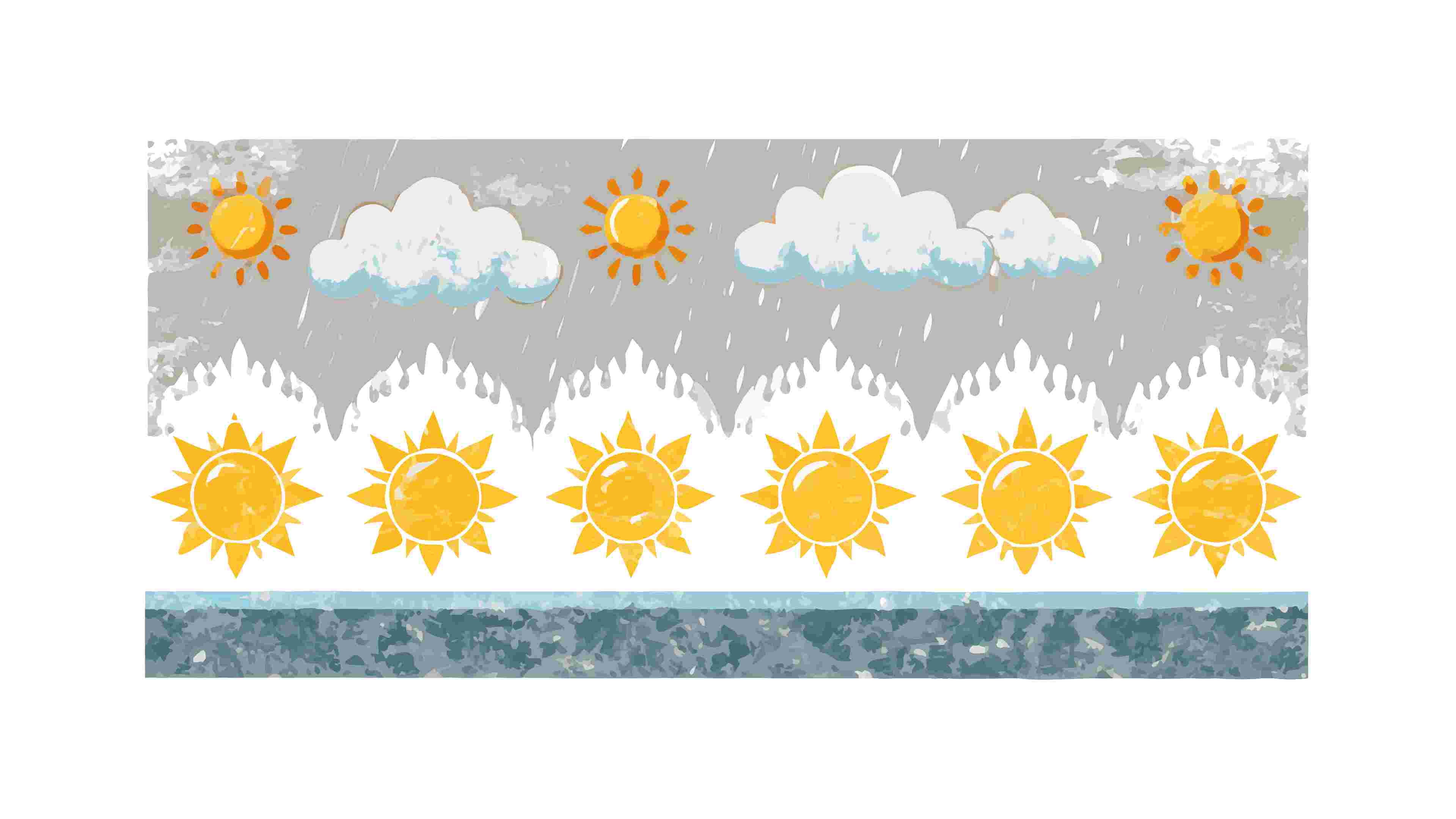 A bright vector illustration of a sunny sky adorned with fluffy clouds and stylized stars, forming a cheerful weather border. Perfect for children's designs, daily weather forecasts, positive messaging, or decorative elements, vector design Generative AI