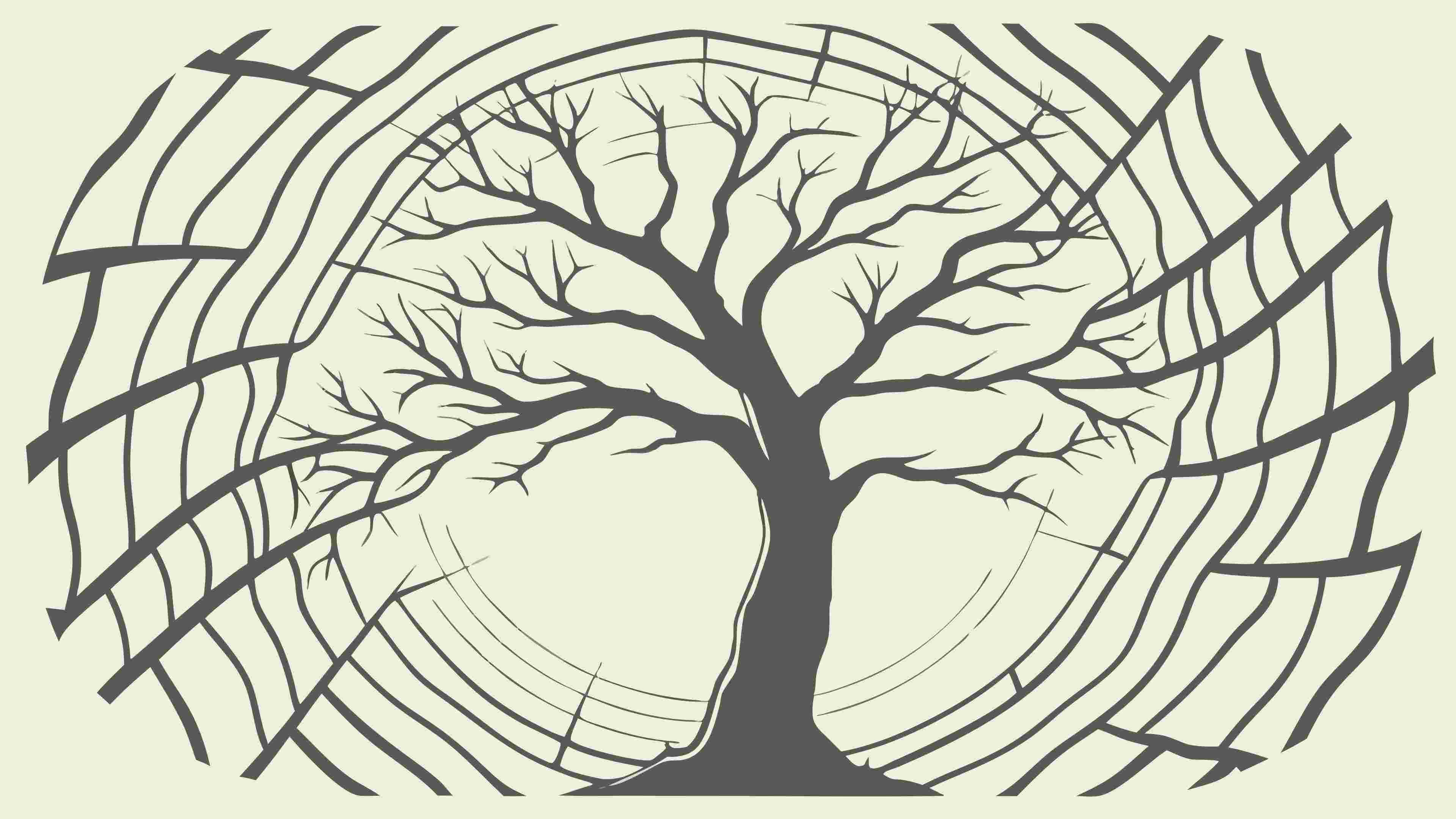 A mesmerizing vector illustration of a swirling Tree of Life, with an intricately detailed root system. This symbolic design represents growth, connection, and wisdom, perfect for spiritual themes, nature-inspired art, or decorative elements, vector design Generative AI