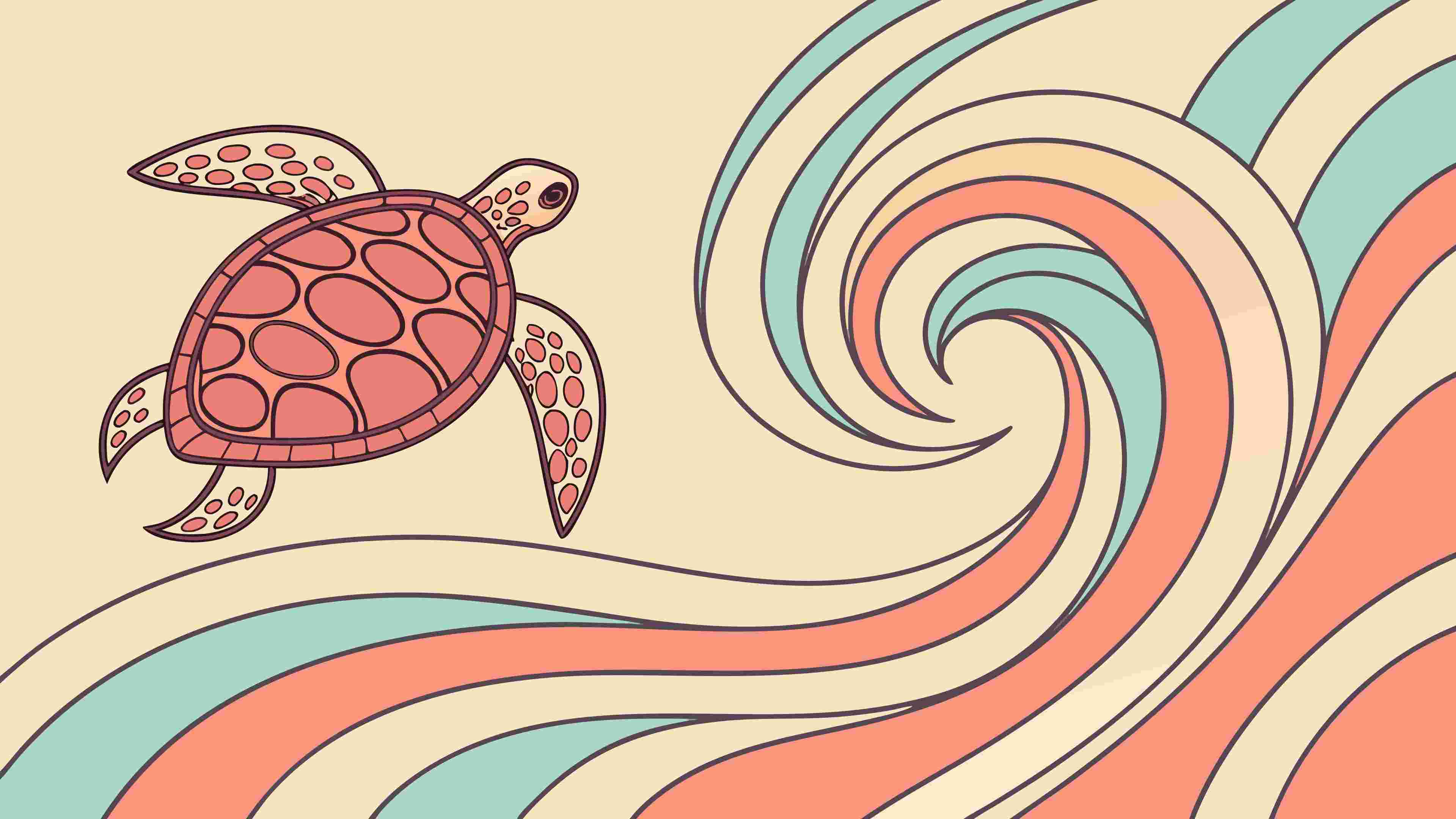 Swirling Turtle Ocean Art with Abstract Wave Patterns, vector design Generative AI