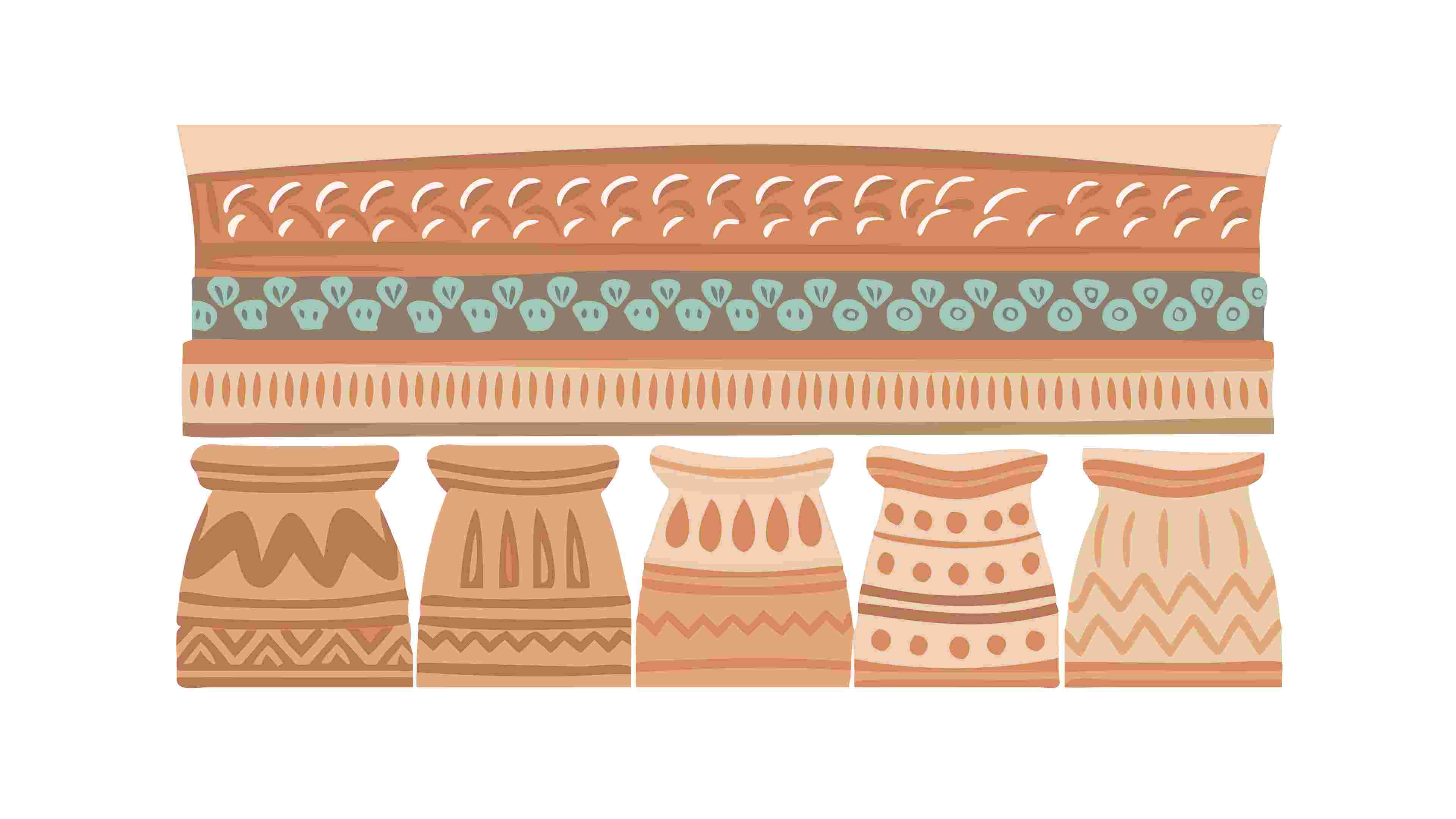 A charming vector illustration of traditional handicraft baskets with detailed woven patterns, forming a decorative border. Ideal for cultural events, artisanal markets, home decor themes, or craft workshops, emphasizing authentic craftsmanship, vector design Generative AI