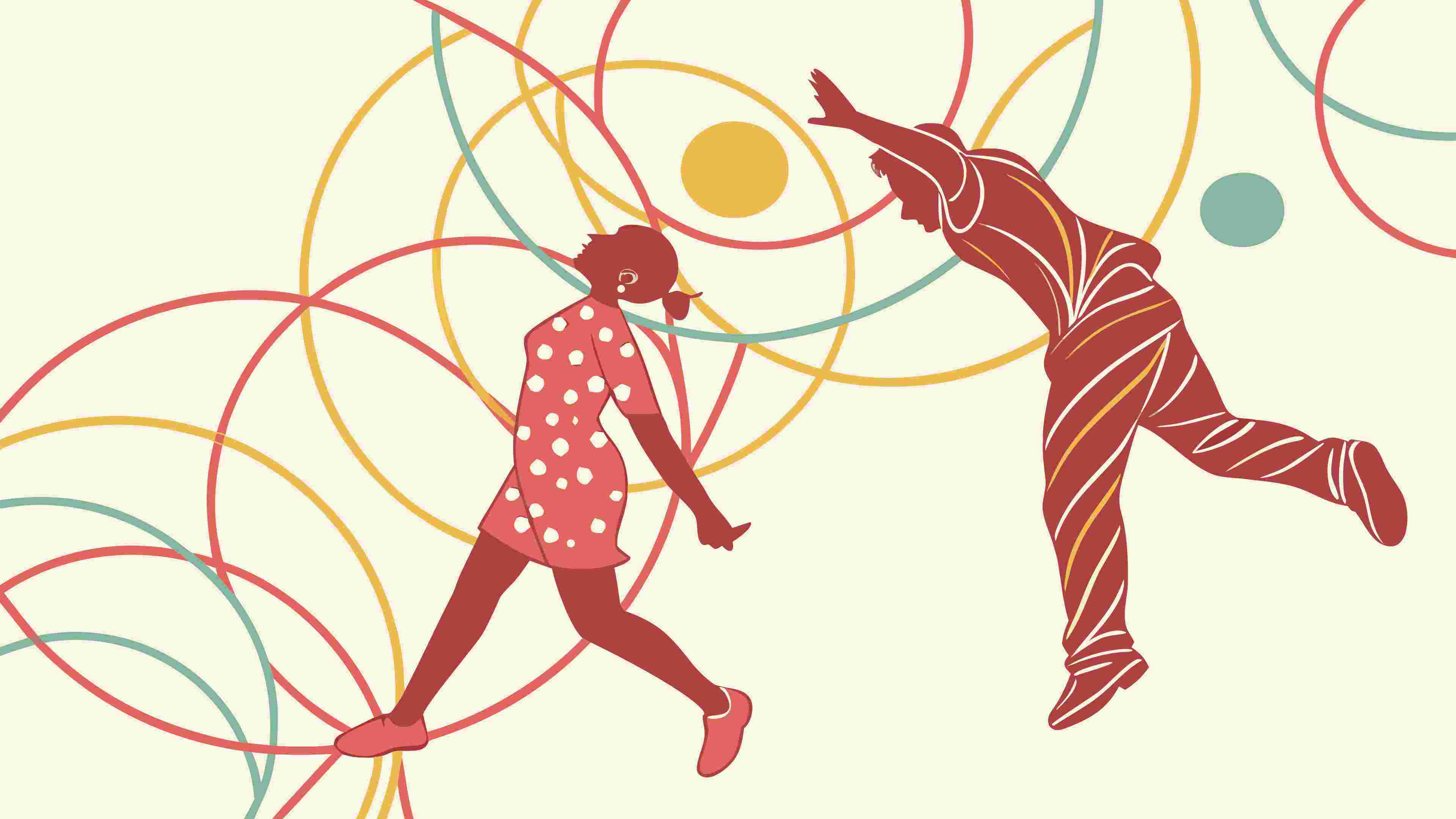 A vibrant vector illustration depicting two runners in motion, interwoven with abstract, colorful lines and fluid forms. This dynamic design is perfect for sports events, fitness partnerships, energetic campaigns, or expressive digital art. Its fluid lines and shared movement convey teamwork and vitality, ideal for captivating and inspiring joint active lifestyles, vector design Generative AI.