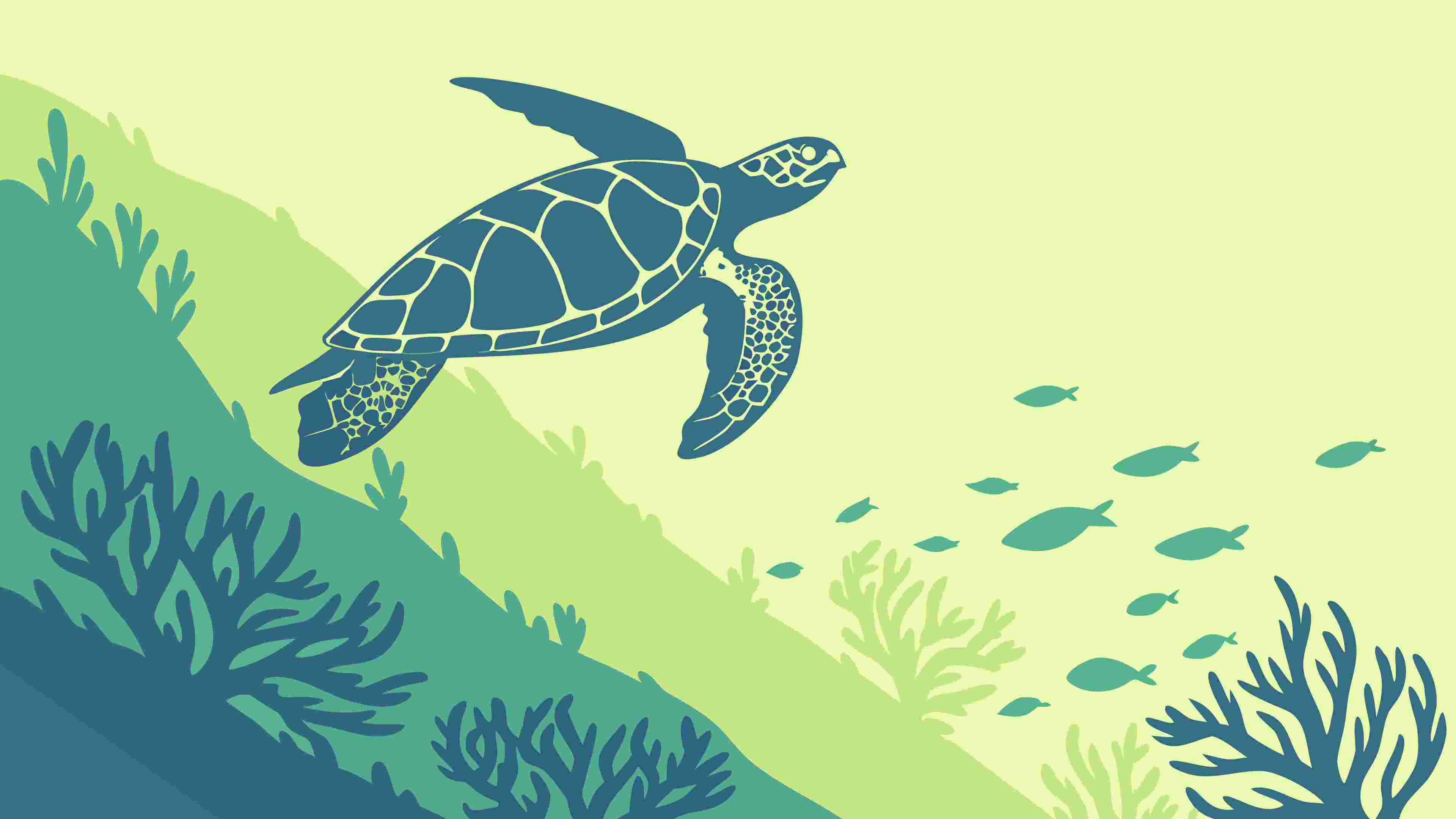 A captivating underwater illustration featuring a sea turtle swimming gracefully amidst coral reefs and schools of small fish. This vibrant scene highlights marine life and ocean conservation, perfect for educational content, environmental campaigns, or aquatic themes, vector design Generative AI