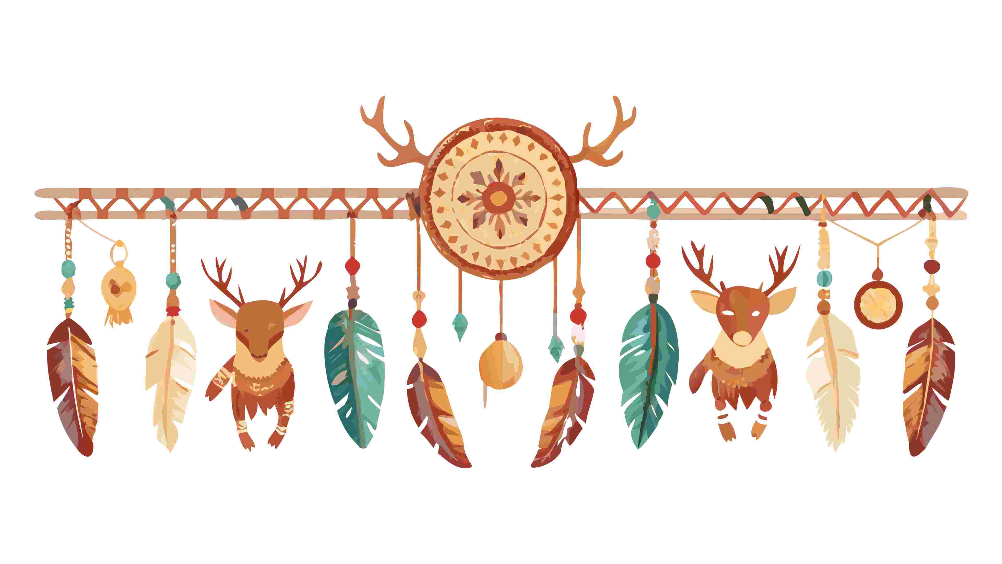 Unique Deer Antler Dream Catcher with Feathers and Beads Vector, vector design Generative AI